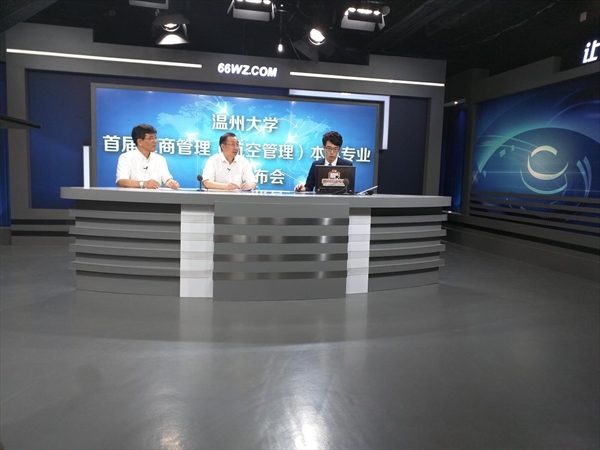 6月17日下午,det365官网网站首届工商管理(航空管理)本科专业招生新闻发布会在温州网演播厅隆重举行。det365官网网站国际合作学院院长严晓鹏、副院长陈军、副院长包含丽及工商管理(航空管理)专业学科带头人、航空专家夏洪山教授就2016年det365官网网站工商管理(航空管理)招生政策和专业信息,包括新专业的人才定位、课程设置、招生要求、就业等考生和家长普遍关注的问题作了详细的解答。