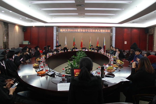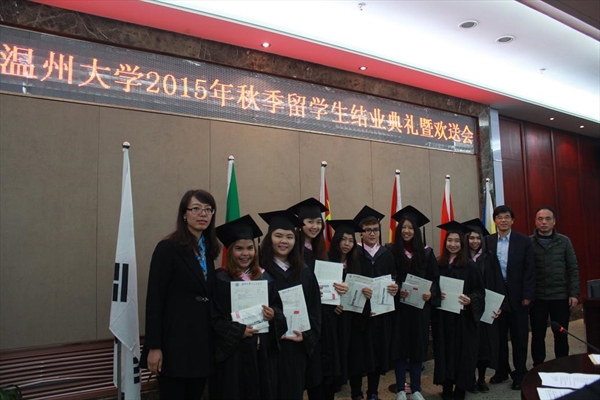 2016年1月11日下午13:30,我校2015年秋季留学生结业典礼暨欢送会在南校区岩松堂白鹿厅举行,泰国班汉语言文学专业“3+1”项目全体学生和语言生参加典礼,国际合作学院党总支书记朱建平、国际合作学院副院长陈军、国际合作学院副院长包含丽、教师代表等出席典礼,包含丽副院长主持典礼。