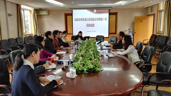 11月19日上午,云南财经大学国际工商学院院长刘尔思、副院长段云龙、党委副书记杨秀伟偕同相关科室负责人员与det365官网调研团队进行了座谈,国际工商学院党委副书记杨秀伟向我们详细介绍了该院中外合作办学项目的发展历史、特色品牌和教学管理经验等,随后双方在学分管理、师资建设、课程设计、教学监督和项目基地建设等方面作了有益的交流,双方期盼今后两校两院在中外合作办学方面进一步加强交流与合作,进一步提升两校的中外合作办学水平。