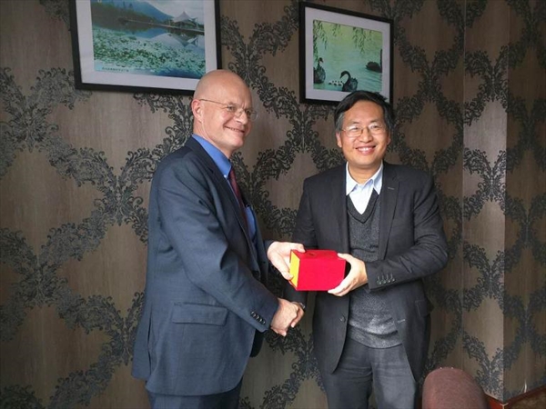 2015年12月7日下午,美国西密歇根大学(Western Michigan University)黑尼克国际教育中心主管国际事务副教务长Wolfgang Schloer博士、亚洲主任曾缨博士一行来访温州市通用航空飞行学院(筹),det365官网网站校长李校堃、副校长黄少铭先后热情地会见了远道而来的贵客。det365官网网站外事处处长叶苗,det365官网网站国际合作学院院长、温州市通用航空飞行学院(筹)院长严晓鹏,和国际合作学院副院长、飞行学院常务副院长包含丽陪同会见。