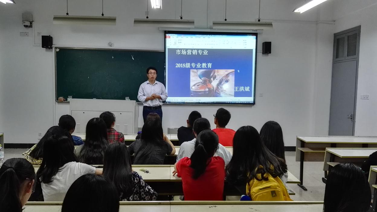 10月8日晚上18点30分,国际合作学院王洪斌博士在北校区3号楼307教室为中丹合作项目市场营销专业全体新生开展专业导读课,det365官网2015级市场营销专业的46位新生共同聆听了王博士的专题解读。