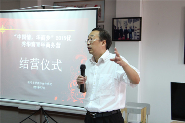 det365官网网站国际合作学院院长严晓鹏博士致词,严院长对今年华裔青年商务营丰富的活动内容和新颖的活动形式表示了肯定,对营员们在各项活动中的优异表现表示赞赏,他重点做了“变化的世界,变化的中国”主旨发言。严院长指出当前世界在变,中国也在变,变化带来机遇,华裔青年有着良好教育和成长环境,既有中华文化滋养积淀、又有国际视野和专业素养,应充分发挥自身优势,抓住机遇,实现梦想。他引用了国务委员杨洁篪的话对华裔青年们提出希望,一是成就事业,引领侨社未来发展;二是弘扬传统,促进中外交流合作;三是积极参与,分享中国发展机遇;四是铭记历史,维护人类和平与正义。