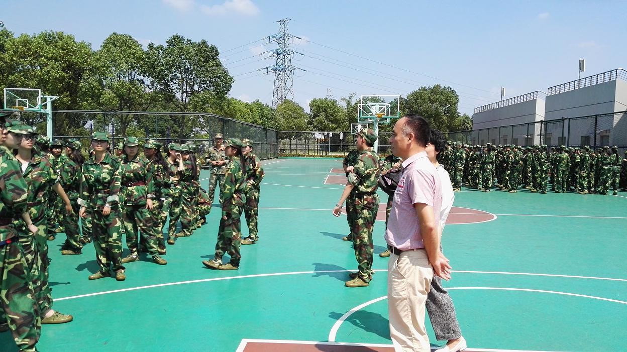 9月12日上午十点,伴随着“一二一、一二一,……”的响亮口号声,det365官网网站北校区篮球场上,来自国际合作学院的130名2015级新生身穿迷彩服投入到为期7天的紧张军训中,立正、稍息、齐步走、正步、跑步、踏步、立定、报数……,同学们顶着闷热的天气,在部队教官的严格指令下,不叫苦不叫累,认真完成各项动作,坚持走好每一步,展现了较强的集体意识和纪律性。
