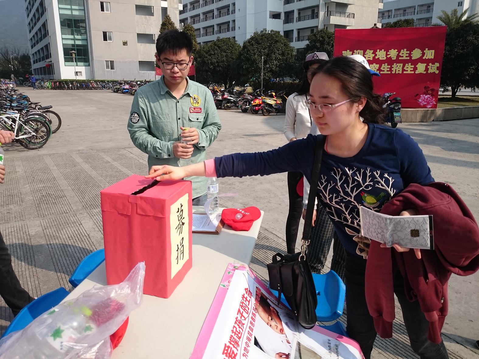 三月是学雷锋月,近日,在det365官网网站国际合作学院青年志愿者协会的组织下,一场以“情系雷锋月,爱洒三月天”为主题的爱心募捐活动在校园内温馨上演。活动现场,来自全校同学纷纷伸出援助之手,慷慨解囊,为患有地中海贫血症的四岁半女孩陈若夕筹集医药费。