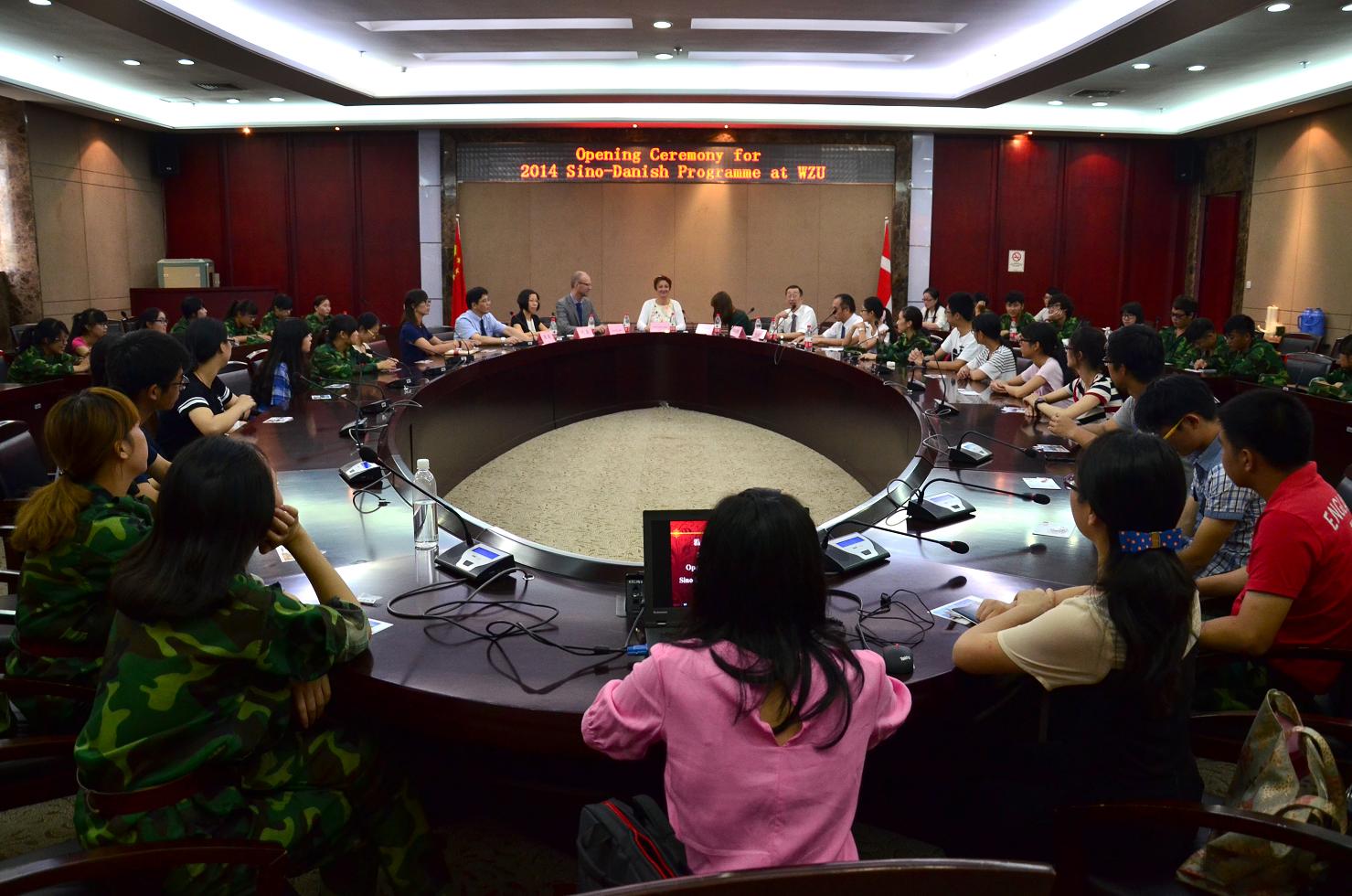 金秋九月,det365官网网站中丹合作办学项目又迎来了一批新同学,9月26日上午, 47张洋溢着青春笑脸的新面孔准时出现在南校区岩松堂白鹿厅。丹麦尼尔斯·布鲁克哥本哈根商学院校长Anya Eskildsen,校长助理Lene Stoktoft、中丹合作办学项目主管Claus Willumsen,det365官网网站外事处处长叶苗、国际合作学院院长严校鹏、党总支书记朱建平、相关教师代表以及中丹合作办学2014级全体新生参加了典礼。典礼全程采用英文进行,由国际合作学院副院长陈军主持。