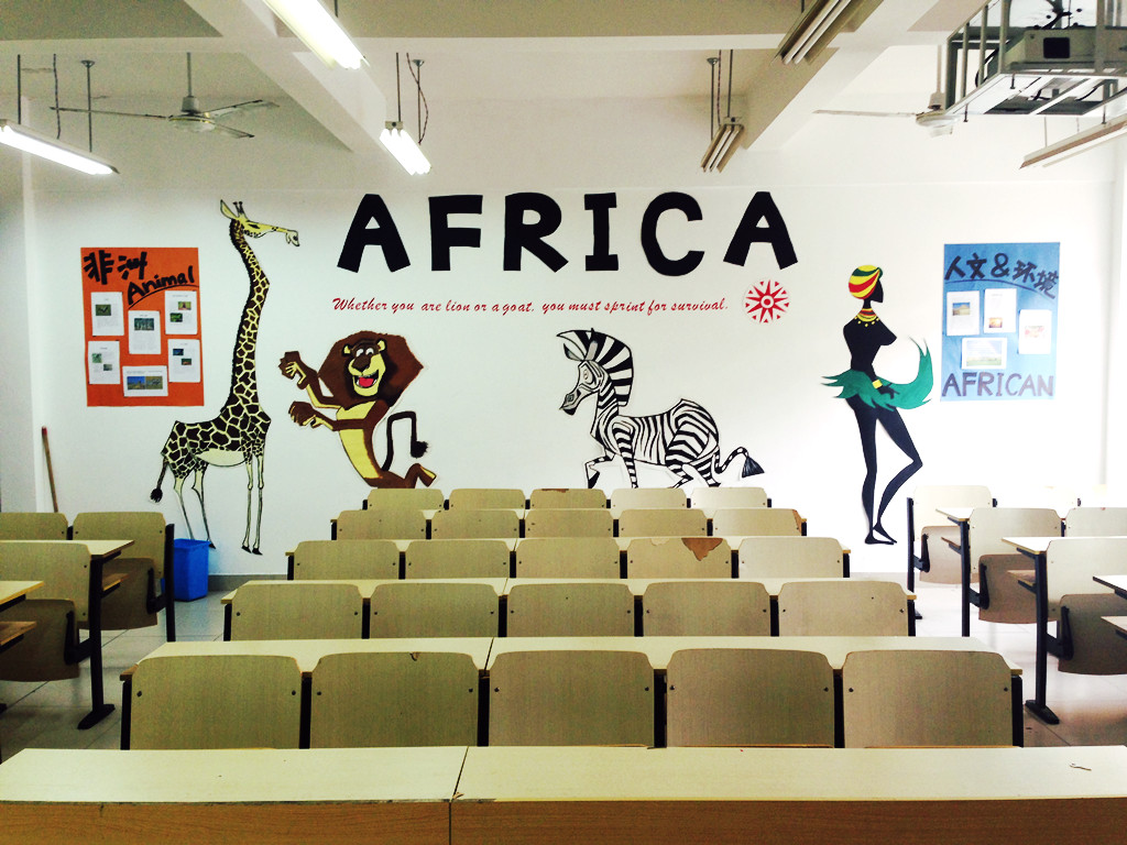 一周内,学生团队作了充分的准备,精心构思、细心装扮,均在规定时间内完成了布置,单调的墙壁经过布置焕然一新:丰富的文字,精美的墙画,栩栩如生的贴花,富有韵味的书画,处处诠释着同学们对多国风格的解读。在评比阶段,由学院老师和学生会成员担任评委,对“金额花费、创意特色、整体搭配、现场讲解”等方面进行综合打分,并最终评出一二三等奖。