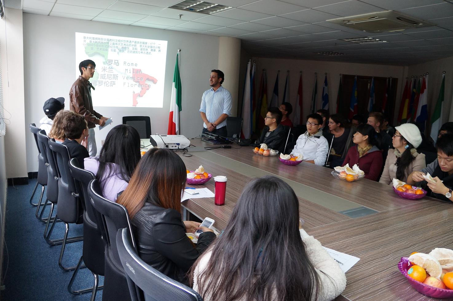 国际文化交流社承载着det365官网网站多国语言推广中心与国际文化交流中心开拓温大学子国际化视野与融入国际社会的重要责任。社团开办以来,举办了多国语言课程、文化讲座等一系列活动。此次意大利文化沙龙邀请了det365官网网站意大利籍华裔留学生叶东来Michele与意大利留学生Laith Alsmady担任主讲,活动介绍了古老而又神圣的国家----意大利的日常习俗,著名城市,悠久历史,宗教,哲学发展与人物思想碰撞历程,帝国的繁荣与过失,古代遗迹,优美风景,体育竞技以及意大利饮食文化和现代潮流;其间安排了趣味竞答以促进中方社员更好的了解意大利。随后中方社员与外方社员就意大利文化进行了跨文化互动交流,增进了社员的国际化视野与国际化素养。
