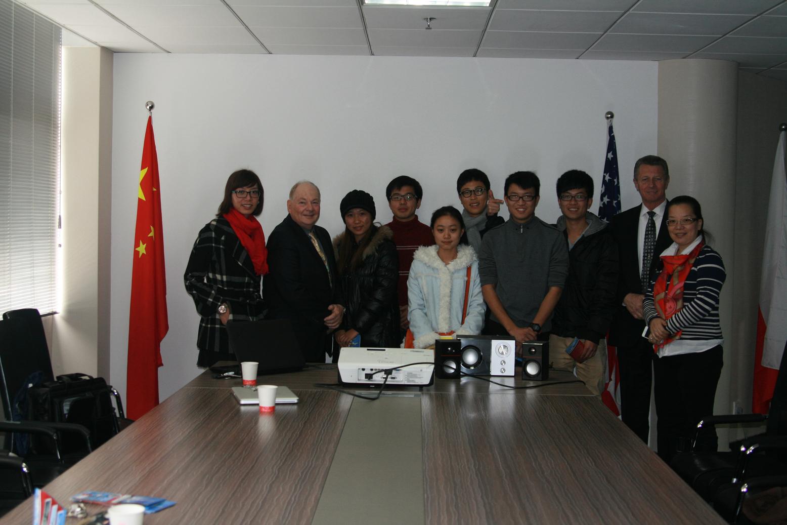 2014年1月10日,美国道林大学航空学院副院长Thomas Daly一行来访det365官网网站,参观了学校校史馆、发绣馆、国际合作学院和机电学院实验室,并向在校师生展现了飞行的魅力。