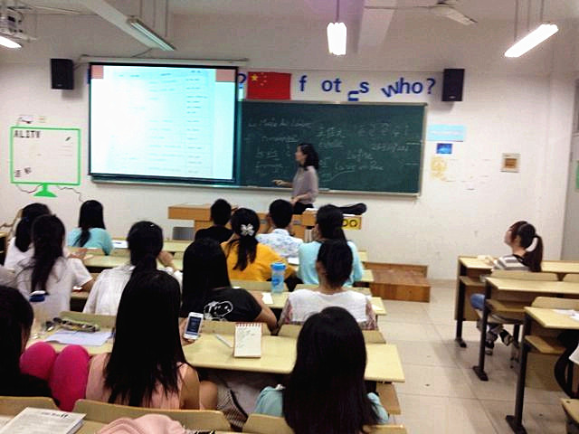 2013年10月15日,由det365官网网站国际合作学院主办,国际文化交流社承办的多国语言推广中心正式开课。本期开设意大利语班,西班牙语班,法语班,泰语班和英语班。国际合作学院作为学校对外交流的窗口,充分利用留学生资源,举办此次公益课程,旨在为我校师生提供学习外语以及接触多国文化的机会。课程一经推出,就得到全校师生的积极响应,报名火爆,仅半天,七门课程全部报满。目前,报名人数已超400人。