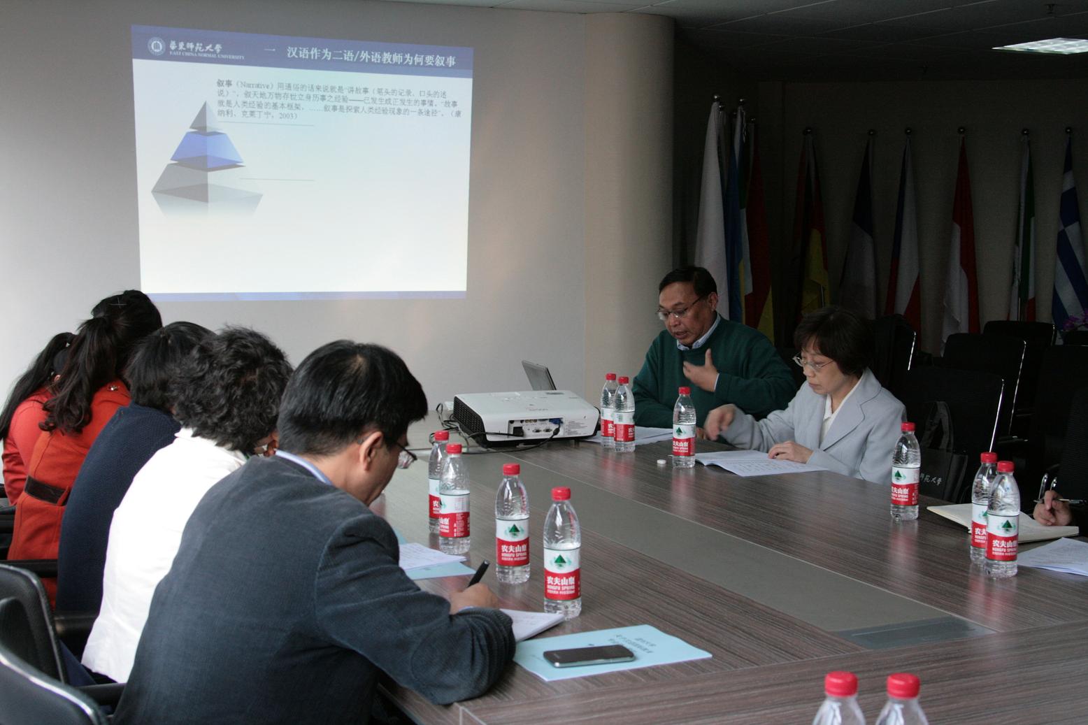 作为研究所的特约研究员,吴勇毅教授作了题为“叙事探究与汉语作为二语/外语教师的认知构建”的讲座,主要阐述了对外汉语教师进行叙事研究的必要性,解析了教师认知的建构过程,分析了叙事研究对教师认知建构和专业发展的重要意义。讲座结合国内外关于教师发展的最新研究成果,配以具体、生动的举例分析,使在座教师受益匪浅。