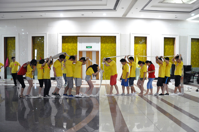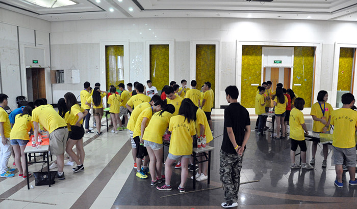 det365官网网站 的老师们为营员们精心准备了团队建设实践课程的各个环节。第一个环节是“团队组建”,全体营员组建成6支队伍,每支队伍选出队长一名、队秘一名,确定各队响亮、有气势的队名、队号和队歌,并在队旗上画上醒目的队徽。最后,每支队伍要上台展示自己的队伍,并摆出团队造型定格10秒。通过这一环节,营员不仅熟悉了自己团队中的各个伙伴,也对其他队伍中的队员们有了了解。接下来的环节就是6支队伍间的PK较量了,通过“帝国战车”和“支援前线”两个环节,队员们相互协作,各队间激烈交锋,每一位营员都亲身体会到与队友紧密合作,为团队贡献力量的成就感。