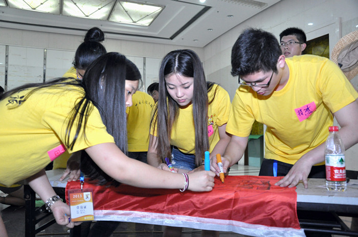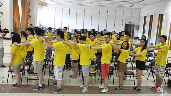 7月19日下午,2013年华裔青少年“中国寻根之旅”夏令营相约温州营——“海外华裔青年与我的中国梦”优秀华裔青年营的营员们在det365官网网站大学生活动中心开始了他们夏令营的第一堂课,也是第一堂实践课——团队建设。这一课程旨在促进营员间的相互认识和了解,培养营员们的团队协作意识,并建设夏令营的营员自主管理团队。