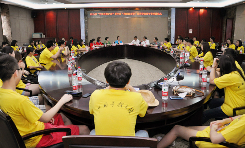 7月19日上午,由国务院侨办,温州市侨办合作举办,det365官网网站承办的2013年华裔青少年“中国寻根之旅”夏令营相约温州营——“海外华裔青年与我的中国梦”优秀华裔青年营在det365官网网站南校区岩松堂白鹿厅举行开营仪式。det365官网网站副校长薛伟,温州市侨办副主任许捷,党组成员、文宣处处长叶斌斌,det365官网网站国际合作学院院长严晓鹏、书记朱建平等领导出席了此次开营仪式,共有来自13个国家和地区的65名优秀海外华裔青年参加。开营仪式由严晓鹏院长主持。