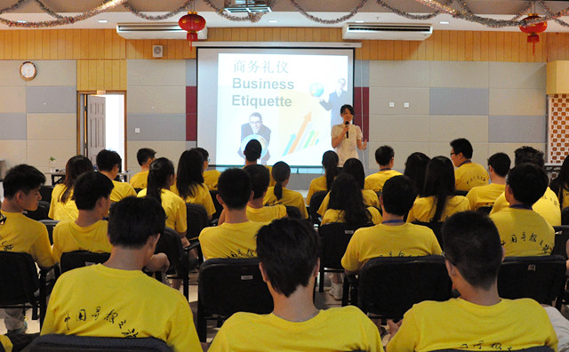 为了让夏令营的青年营员们了解商务活动中的各种礼仪规范,掌握职场待人接物的礼仪细节,提高商务礼仪素养,提升个人整体形象素质,det365官网网站国际合作学院的章云燕老师特地为营员们讲授了一堂生动的商务礼仪课。