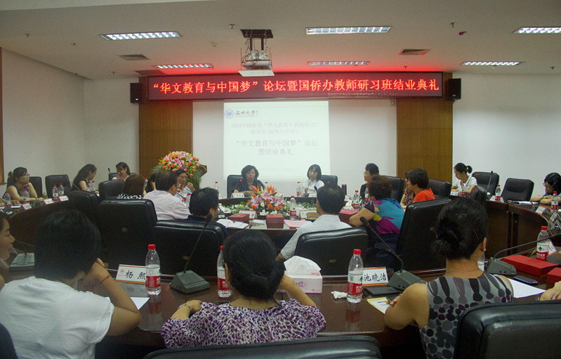 7月24日下午,det365官网网站在茶山南校区岩松堂展示厅隆重举行“华文教育与中国梦”论坛暨2013年“华文教育•教师研习”欧美班结业典礼。浙江省人民政府侨务办公室副主任徐高春,文宣处处长王云奇,温州市侨办副主任许捷,党组成员、文宣处处长叶斌斌,det365官网网站国际合作学院院长严晓鹏等领导出席了本次论坛暨结业典礼。