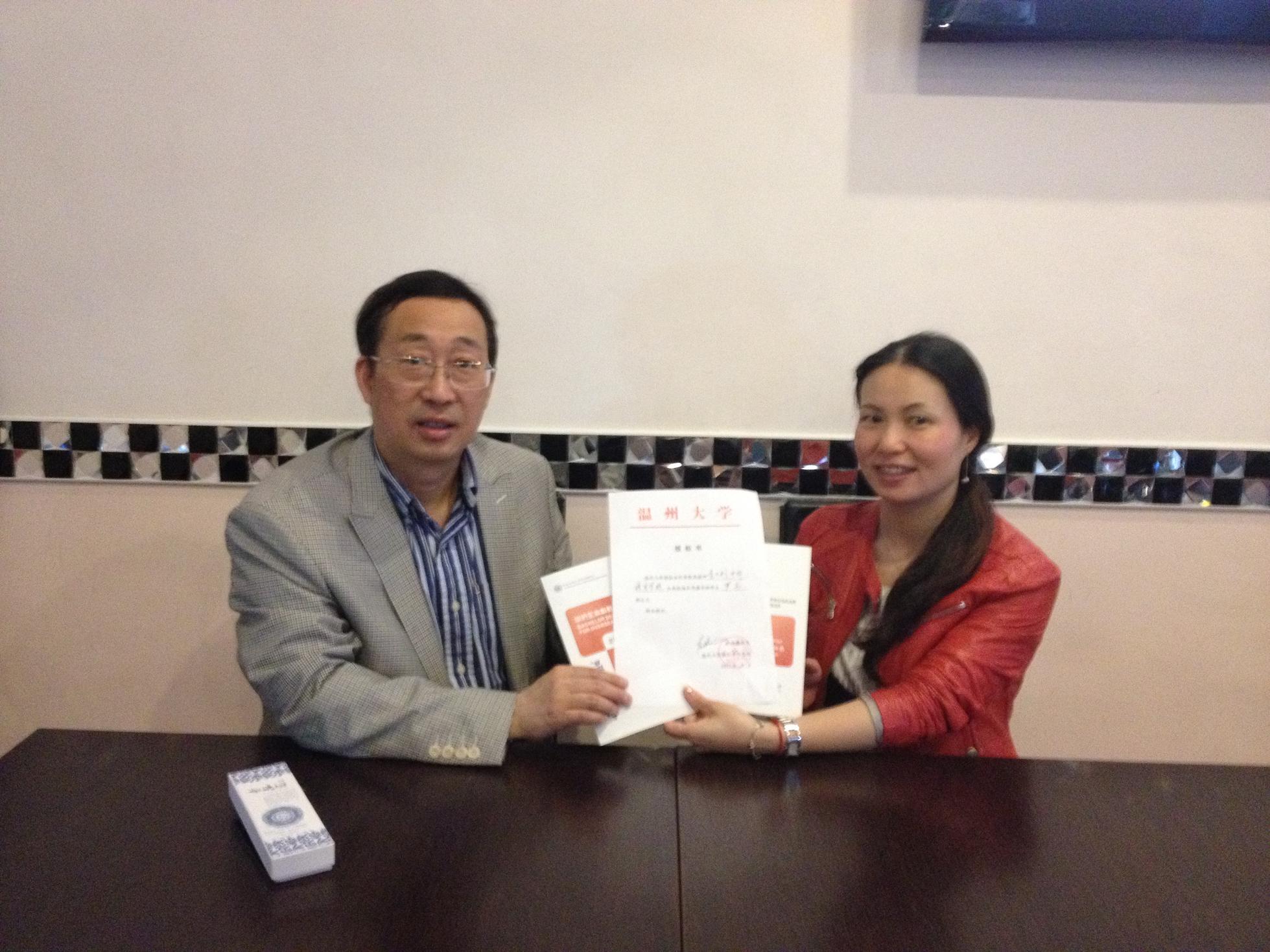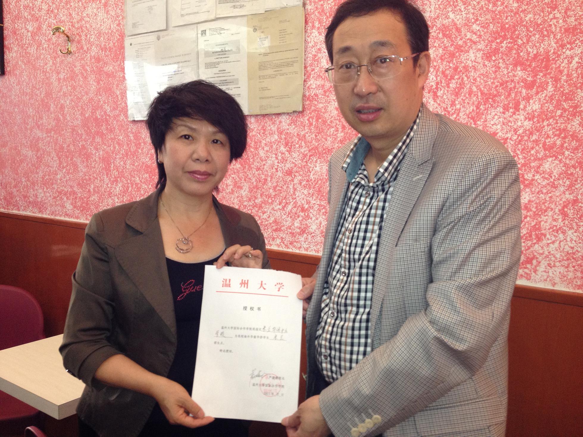 图为严晓鹏院长向罗马中华语言学校颁发det365官网网站华侨生海外招生授权书
