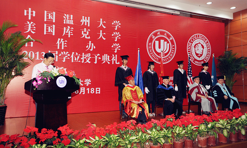 6月18日上午,det365官网网站中美合作库克项目2013届毕业典礼在det365官网网站茶山校区会展中心雁山厅隆重举行。det365官网2009级42位毕业生从det365官网网站副校长薛伟博士、库克大学董事长习克先生(Mr. Robert Schick)、库克大学校长贺睿拉博士(Dr. Jorge L. Diaz-Herrera)、库克大学中国总校区校长黄天中博士(Dr. Michael Hwang)手中接过了美国库克大学管理学学士学位证书,这是他们终生难忘的一天。