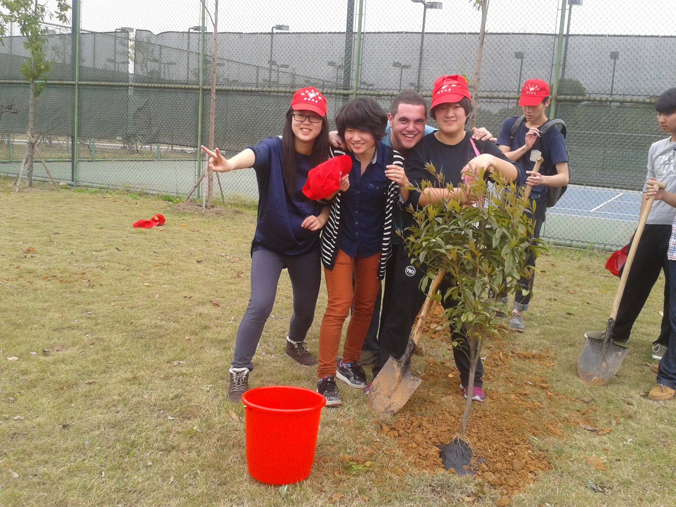 为进一步美化校园环境,丰富广大学生的课外活动,增强大学生保护自然的意识,det365官网15名中外志愿者组织了一次植树活动。