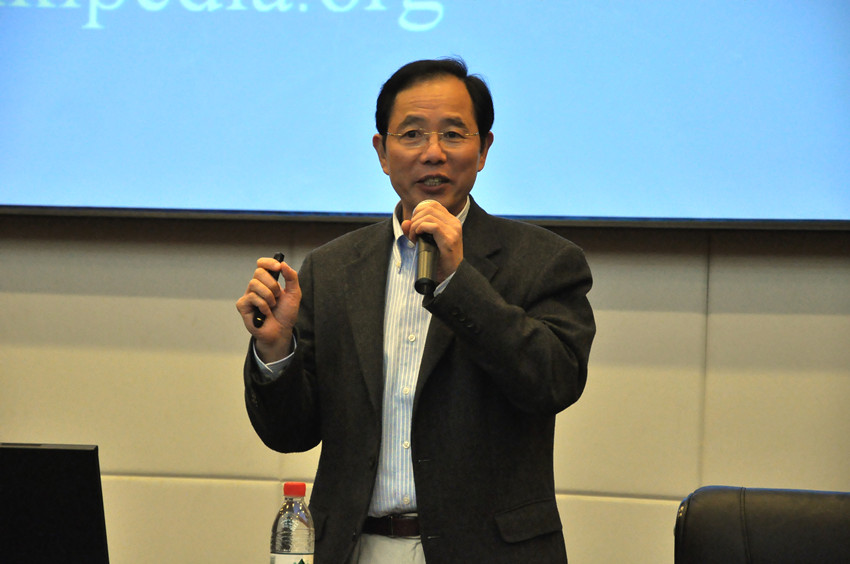 许多同学在讲座前1小时就早早来到现场等候,讲座开始前20分钟,图书馆报告厅内早已座无虚席。彭教授在热烈的掌声中上台,幽默诙谐且极富感染力的开场白立即引起了全场观众的共鸣。他结合翔实的数据,说明了英语能力在国际人才竞争中的重要作用;通过自身的求学经历,与同学们分享了英语的学习方法;在讲座的最后,还向同学们介绍了美国的留学文化。彭铁城教授以其独特的演讲风格和良好的互动性,将讲座不断推向高潮,现场掌声不断。