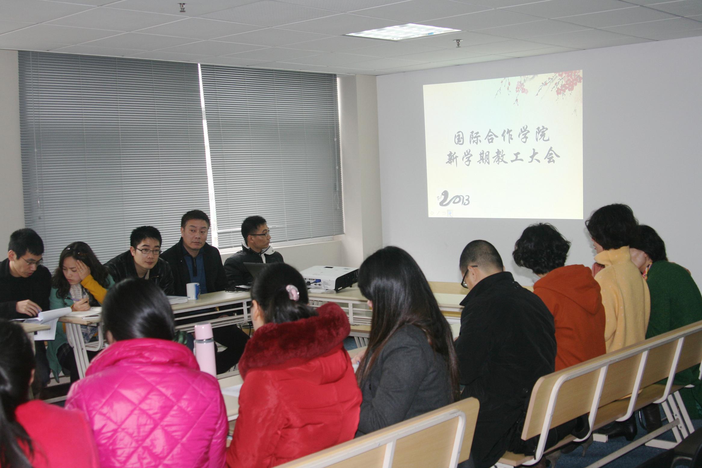 随后,严晓鹏院长对2012年学院工作进行了全面的回顾和总结,并对2013年的工作进行了部署。他指出,2012年学院的各项事业发生了翻天覆地的变化,特别是中丹合作项目的阶段性成果逐渐涌现和留学生学历教育规模的扩大使我们学院逐步提升了在学校的地位。首届优秀海外华裔青年文化营的举办、亚洲研究项目的开拓和出国留学项目的继续开展为学院的特色发展之路添砖加瓦。学院虽然起步晚,但通过全体教职员工的不懈努力已经做了大量基础性的工作,面对2013年各项新的任务,学院在教学、科研、合作项目申报、人才引进、管理规范化等方面依然任重道远,需要全体教职员工的共同努力。