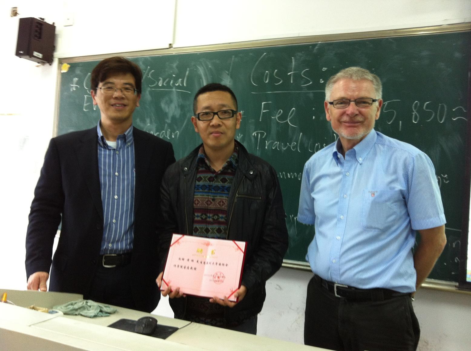 2012年4月11日下午3:30,det365官网在7D-407教室举行了聘任黄振先生为国际合作学院客座教授的仪式。院长严晓鹏、副院长陈军、中丹合作项目丹方项目经理Jorgen Dalhoff先生参加了聘任仪式。