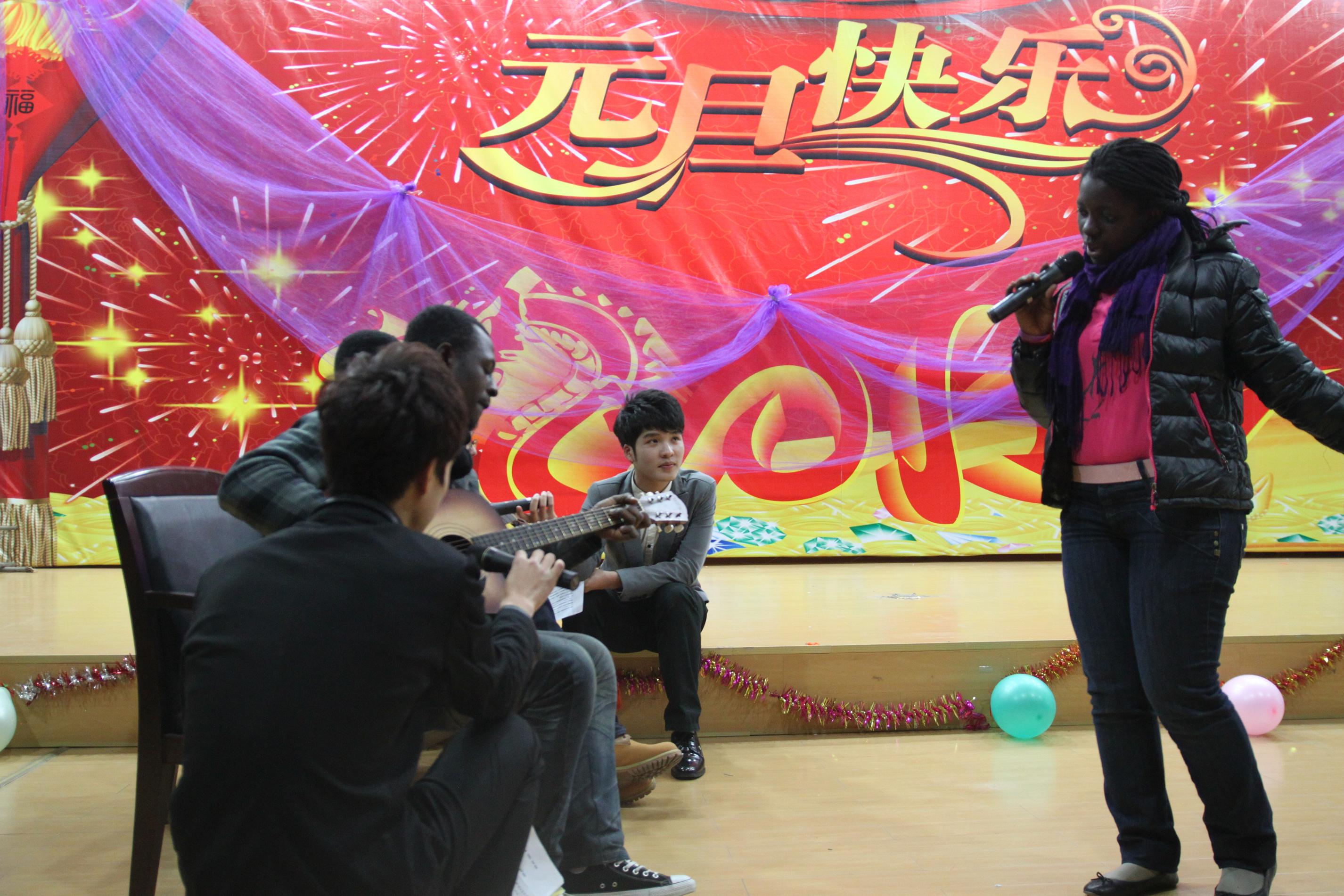 出席晚会的学院领导有学院党总支书记方建敏,学院副院长陈军。短剧《穿越》为晚会拉开了帷幕。舞蹈,唱歌,小品,晚会节目丰富多彩。教师的风采,学生的朝气,在现场得到完美的体现。女子跆拳道表演“以武取胜”;小品《爱笑》令人捧腹;张丽丽老师的葫芦丝演奏使det365官网同学着实感受到了艺术的魅力;外教Crumly的一首《This land is your land》以及加纳留学生自弹自唱的《Happy New Year》将气氛带向高潮。