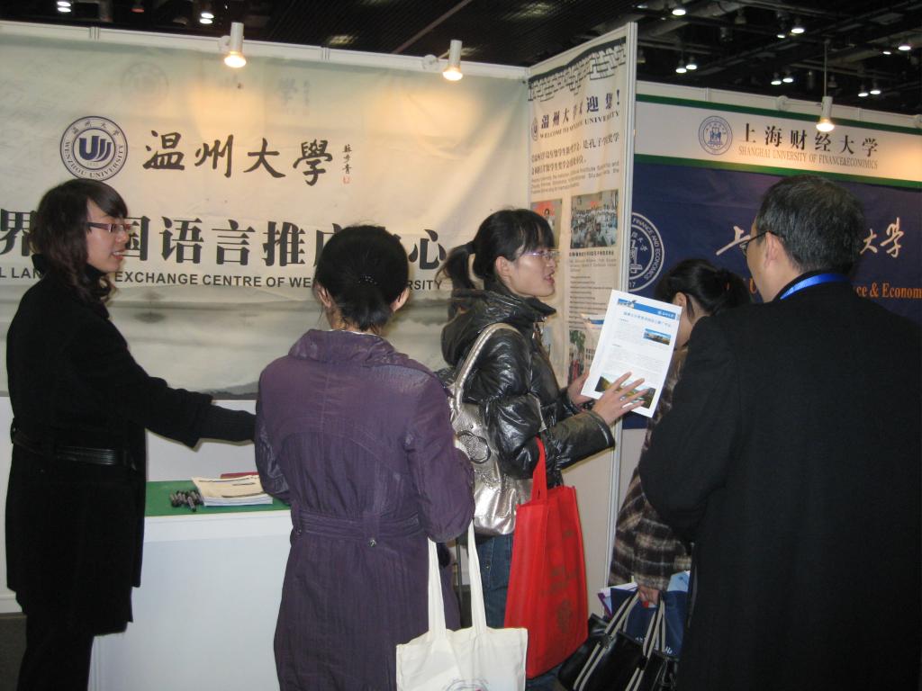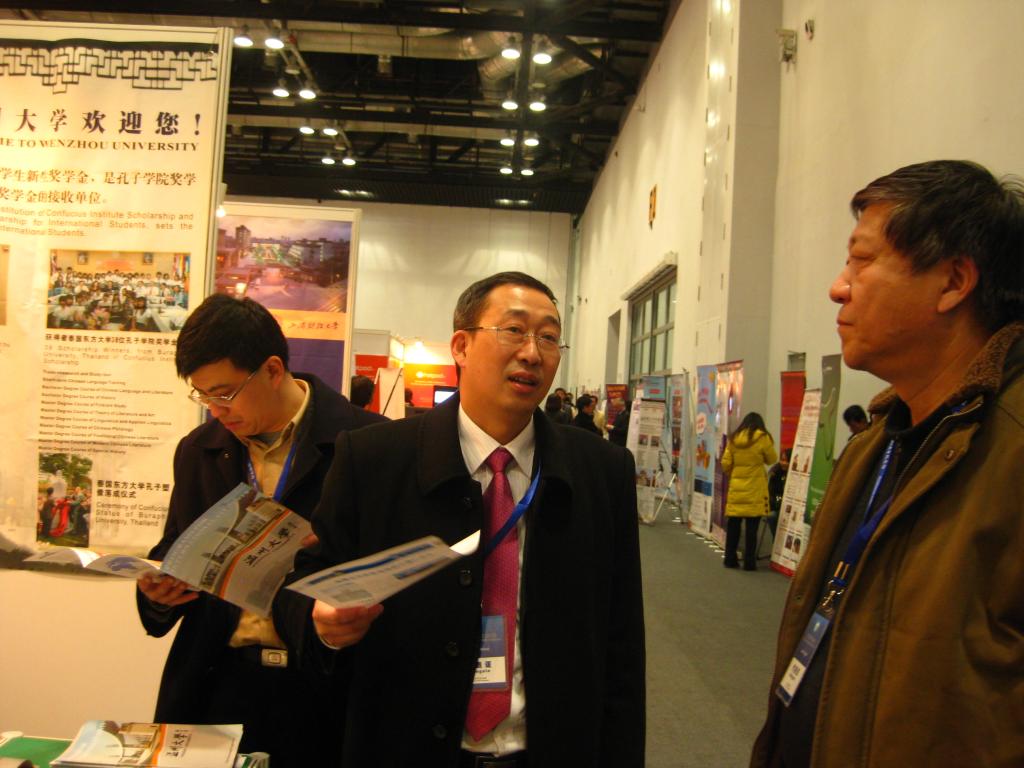 展会期间,浙江省教育厅巡视员张绪培和外事处处长舒培东参观了我校设的展位,对我校孔子学院的工作给予了高度的评价“det365官网网站是浙江省唯一一所参加此次展会的高校,致力于孔子学院和汉语推广的工作”,并对“det365官网网站世界各国语言推广中心”的想法和工作给予肯定。我校代表团积极和各国孔子学院、国内其他大学进行交流,宣传了det365官网网站和推广了“det365官网网站世界各国语言推广中心”。我校代表团还参加了新产品推荐与研讨活动,展示了孔子学院文化交流项目的具体方案,努力把det365官网网站世界各国语言推广中心打造成为名副其实的“小联合国”。